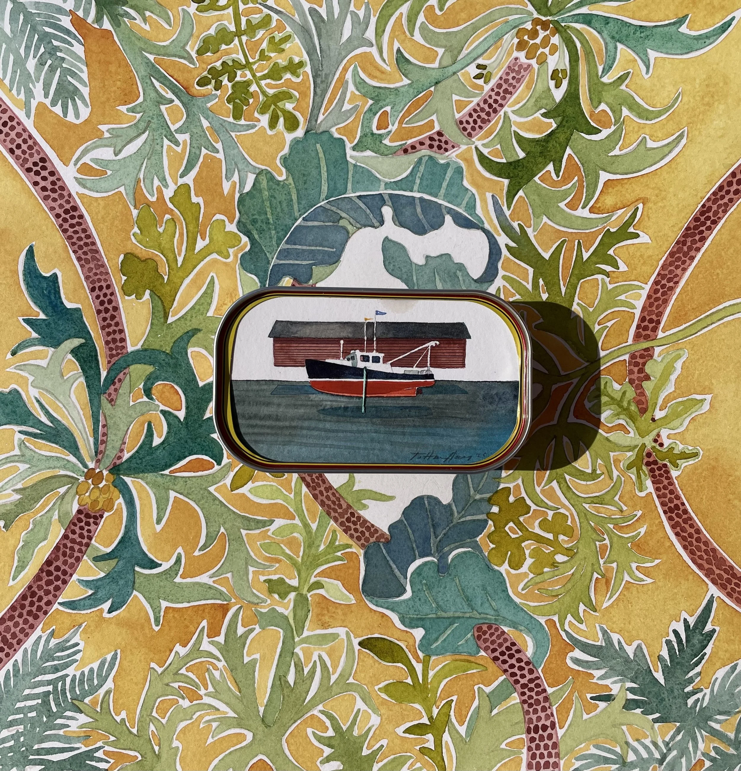 Lobster Dingy, 2024, watercolor, 14.5 x 14.5