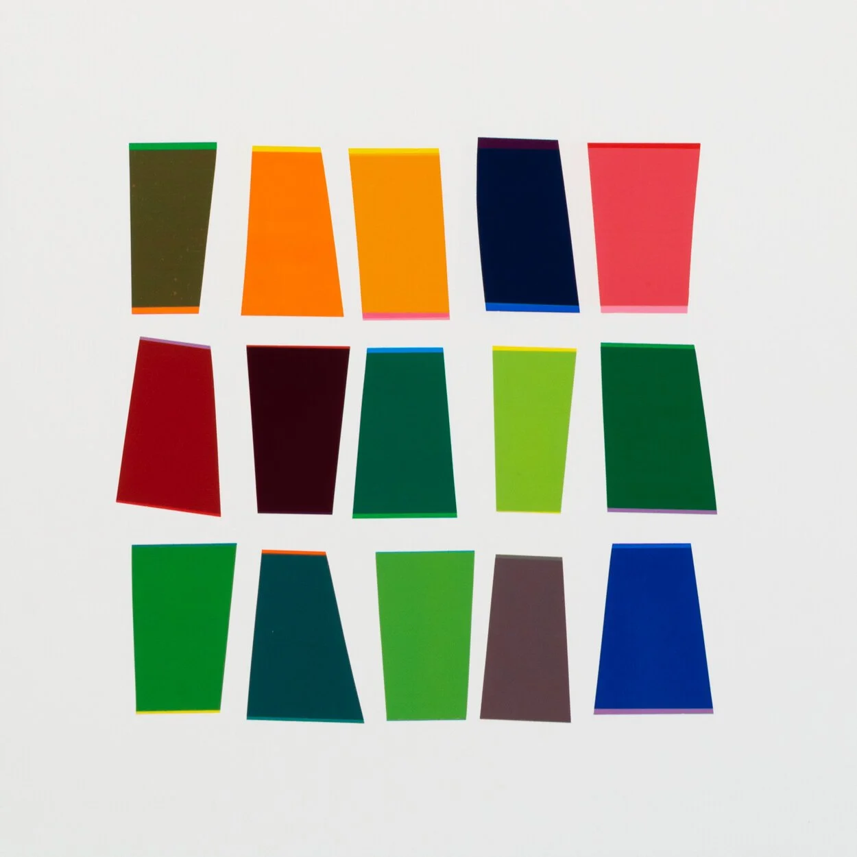 Pablo Manga works in a mode of geometric abstraction infused with interests that are social and spiritual, emotional rather than rational, and concern bodies not platonic forms. His work combines an emphasis on opticality and color relativity with an interest in present-moment awareness developed through meditation practice. Manga aims for compositions that activate the eye and reward sustained viewing with unfolding internal dynamism and the emergence of shifting patterns and color relationships. In this way he invites the viewer to see themselves seeing—and feeling-thinking-being. Manga’s goal is for the work to open contemplative visual spaces that are a resource for inner life and being in the world. The works in Held Together were made a year into the pandemic and are layered with reflections on optimism, the challenges of isolation, and supports for joy-vitality-aliveness. The works build upon a series called Ojalá (a Spanish word meaning hopefully or God willing) that he began pre-pandemic and continued through 2020 as a way of persisting in his work. In that series, overlapping blocks of semi-transparent colored tape are arranged in dense grid patterns in a play of chromatic difference and repetition. The pieces present a kind of kaleidoscopic proliferation of the = sign, and are embedded with ideas of equality, multiplicity and inclusion. In them, each mark and combination of colors is unique and participates equally in the rhythm and voice of the collective assemblage.