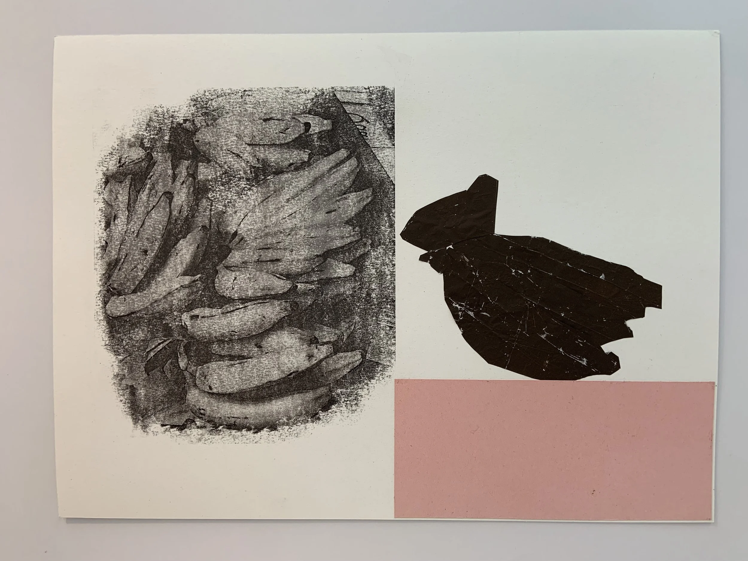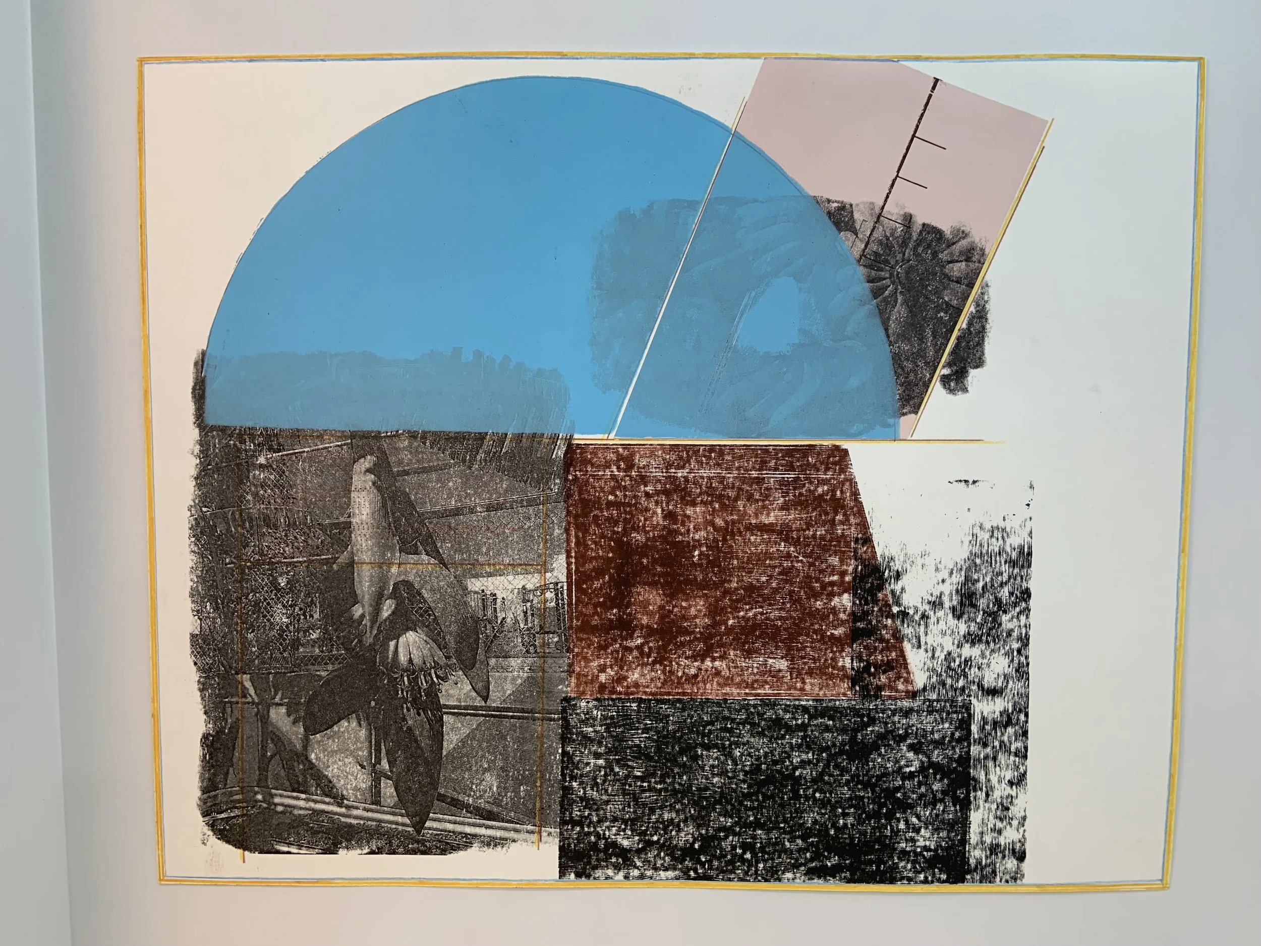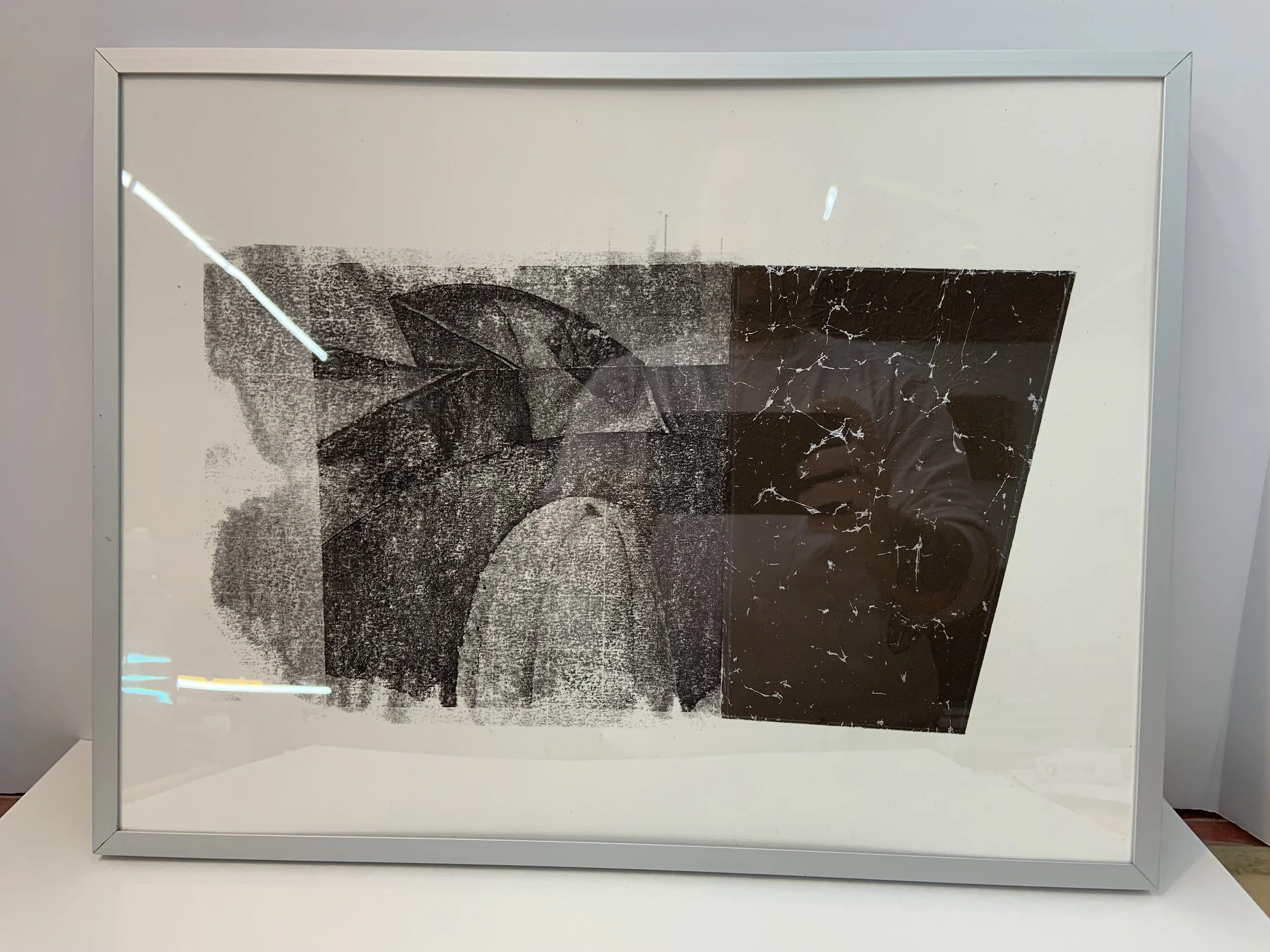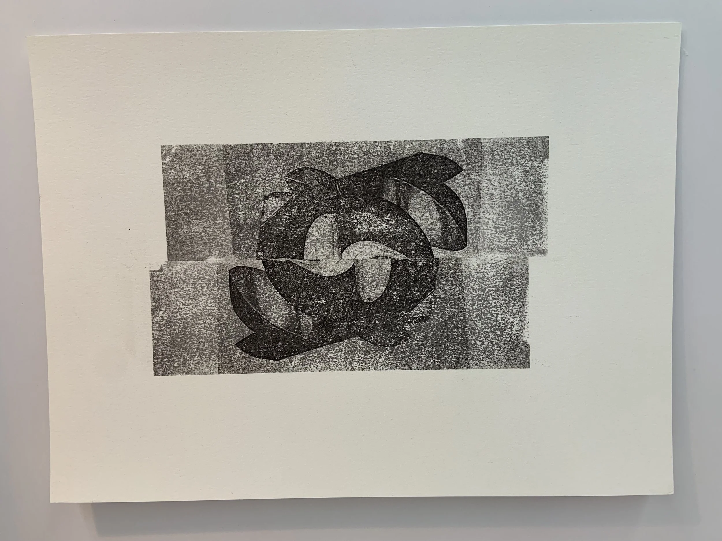 Somewhere in between; there I am (June 2025), photo transfer and lino cut, 16 × 20”
