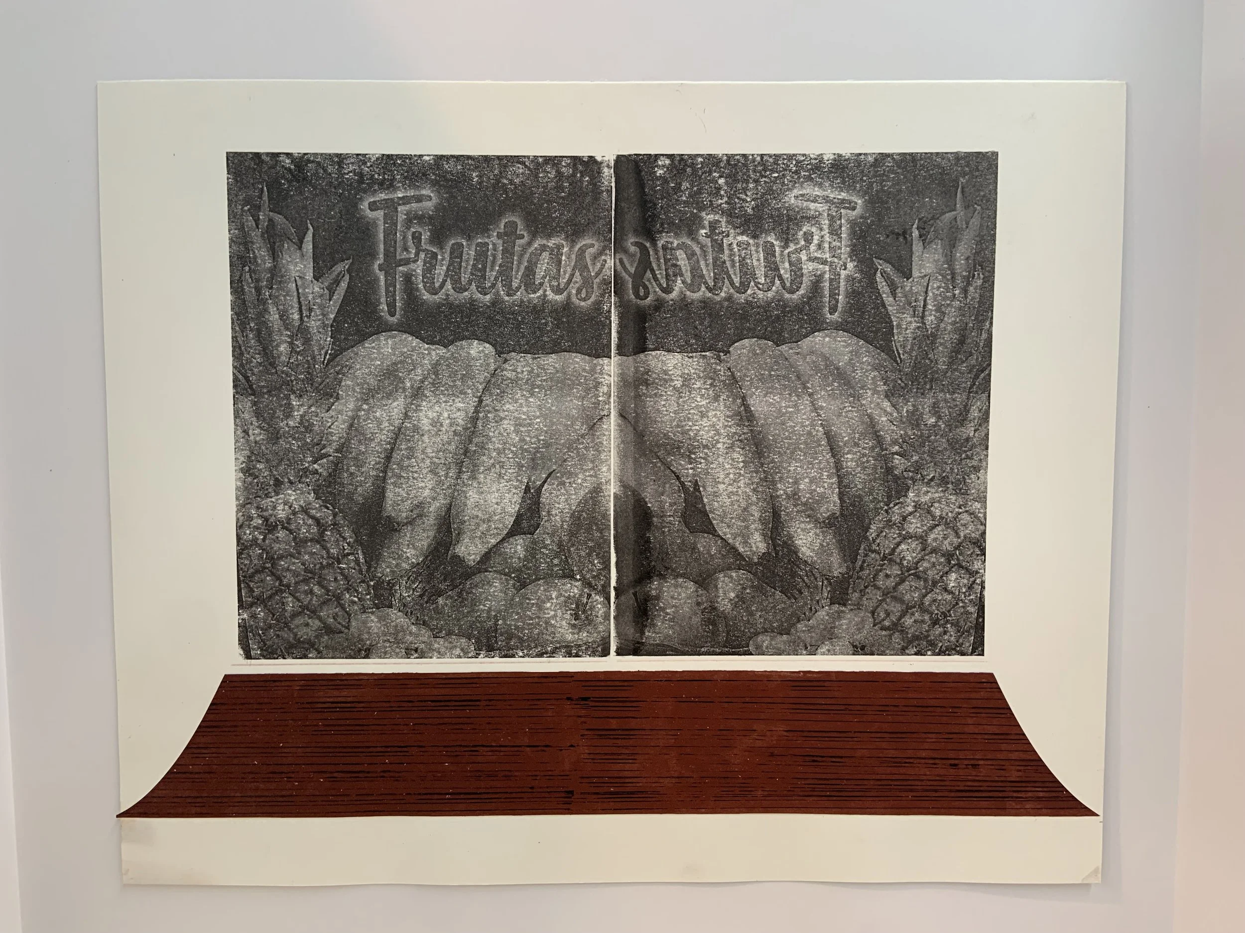 Frutas (December 2024), photo transfer and letterpress collage, 16 × 20”